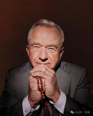 照片说明:小罗伯特·F·肯尼迪身着灰色西装,双手举至下巴,紧握一串深棕色念珠(此姿势为他向摄影师提议)小罗伯特·F·肯尼迪(下称肯尼迪)从小就隐约知道,命运可能将人推向可怕的境地。“我总觉得我们都卷入了一场伟大的斗争,”他曾写道,“世界是善恶交锋的战场,而我们的生命将在这场冲突中耗尽。”他9岁时叔叔遇刺,14岁时父亲遭遇同样的命运。今年秋天,当他得知好友查理·柯克被枪击时,我恰好坐在他身边。当时我