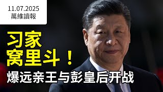 (《万维读报》 20251107-4)1、习家窝里斗!爆远亲王与彭皇后开战 连日缺席重要场合引起外界猜测后。11月7日,中共陕西省委常委、西安市委书记方红卫官宣落马。有消息称,方红卫和他的生活、机要、值班和警卫四个秘书在拜观音期间被带到天津陈敏尔地盘审讯,方红卫最后结局可能是降级成副处退休,原因是他有40多个亿,其中30多亿给了习远平。更有爆料称,习远平支持