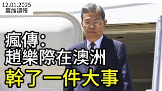 1、 “带她回国”?赵乐际澳洲之行曝惊天隐情中共第三号人物赵乐际11月22日至25日突访澳洲。官方说法是推动中澳关系回暖、加强两国立法机构交流。然而,在中日关系持续紧张、区域局势敏感之际,这次高规格出访却被坊间解读为“另有隐情”。一则震撼性爆料迅速在中文舆论圈发酵——赵乐际此行真正目的,并非外交,而是为了“秘密带回”在澳洲卷入酒驾致人伤亡案件的女富豪杨兰兰,甚至不惜“设计掉包”,留下“假杨兰兰”继
