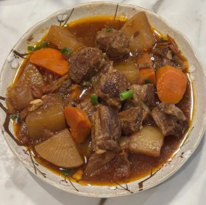 牛肋條稍微開水沖洗一下,剪成4-5公分大小