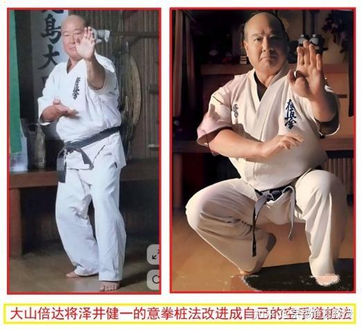下面这两个功架子照片,你看了是否觉得似曾相识的感觉呢?这是空手道极真会创始人、世界武圣大山倍达的两个桩功架子,起源于和泽井健一的交流后而加以改进升华的。
