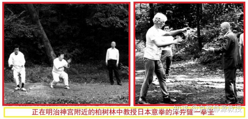 正在日本明治神宫附近的树林里教授日本意拳的泽井健一,这是上个世纪五十年代的历史照片。右边那个洋人,就是如今已经在日本取得八段段位的荷兰裔日本意拳家,泽井的高徒!另外几位,如今全是九段和十段实战派顶尖高手。见下面照片: