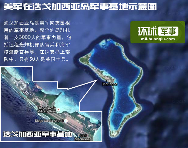 "美军在迭戈加西亚岛军事基地示意图。"