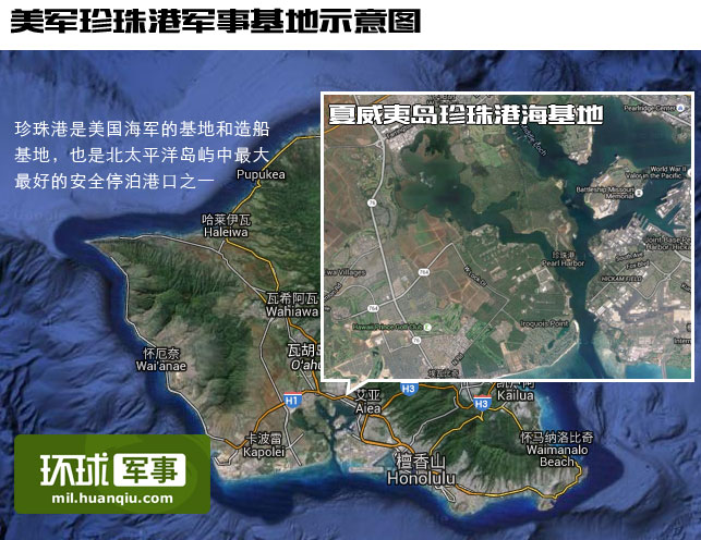 "美军珍珠港军事基地示意图"