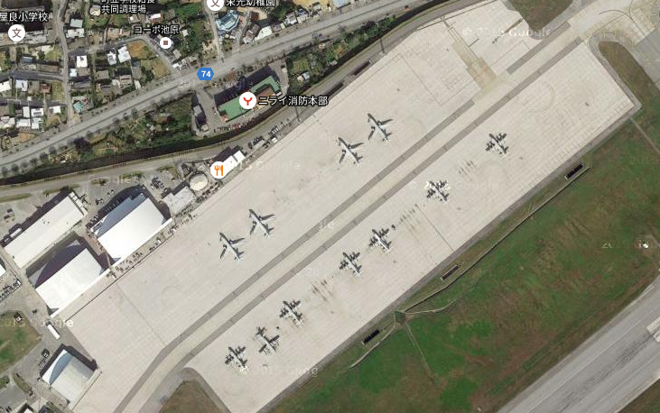 "中国对本国岛礁进行的基建和部署让美国十分愤怒,然而,美军的海外基地中,不乏在岛屿上部署军事基地,而且这些军事基地武装齐备。图为美军在冲绳的军事基地,两大机场为美军提供源源不断的海空军支持。"