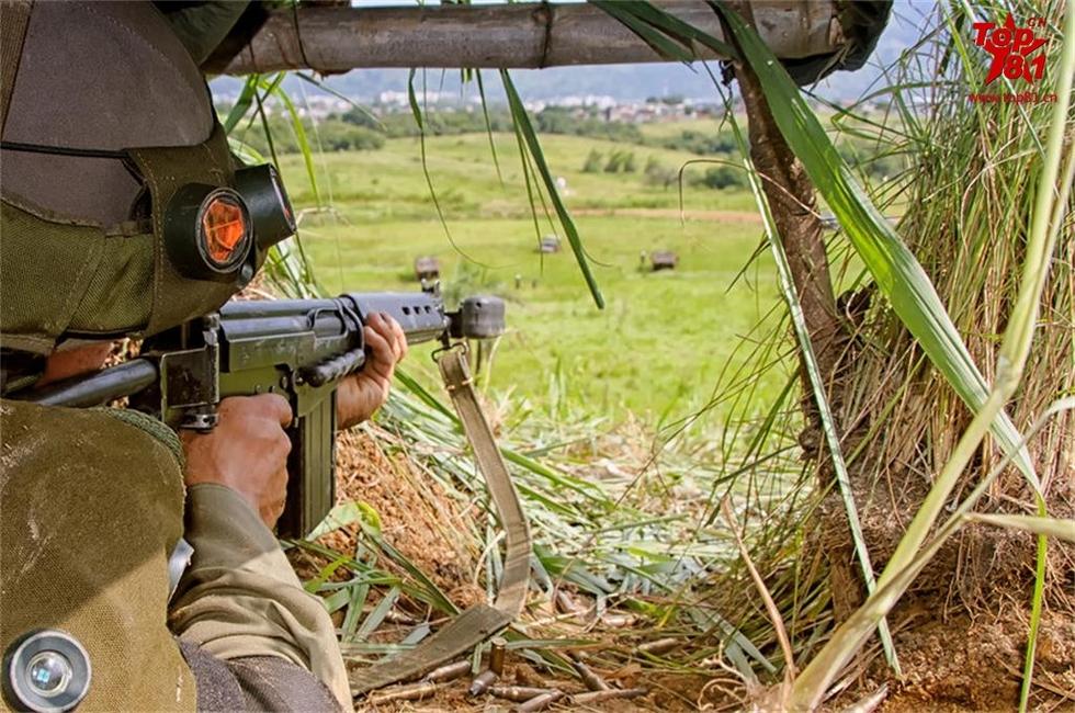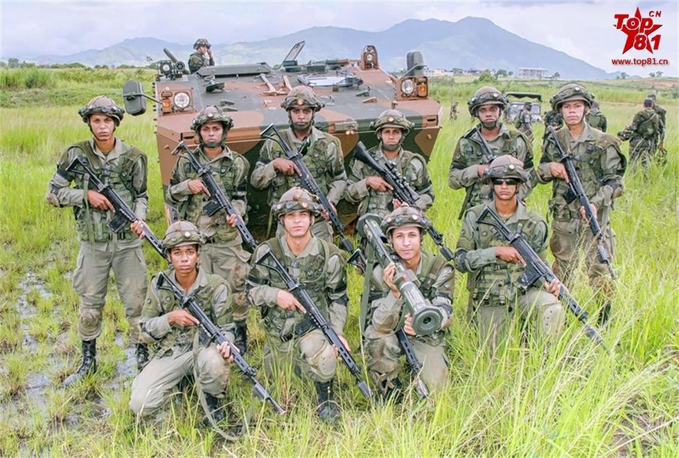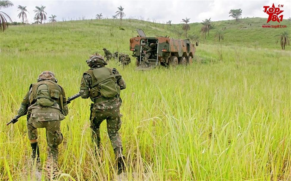 "参加训练的巴西陆军步兵,身后为VBTP-MR装甲车。"