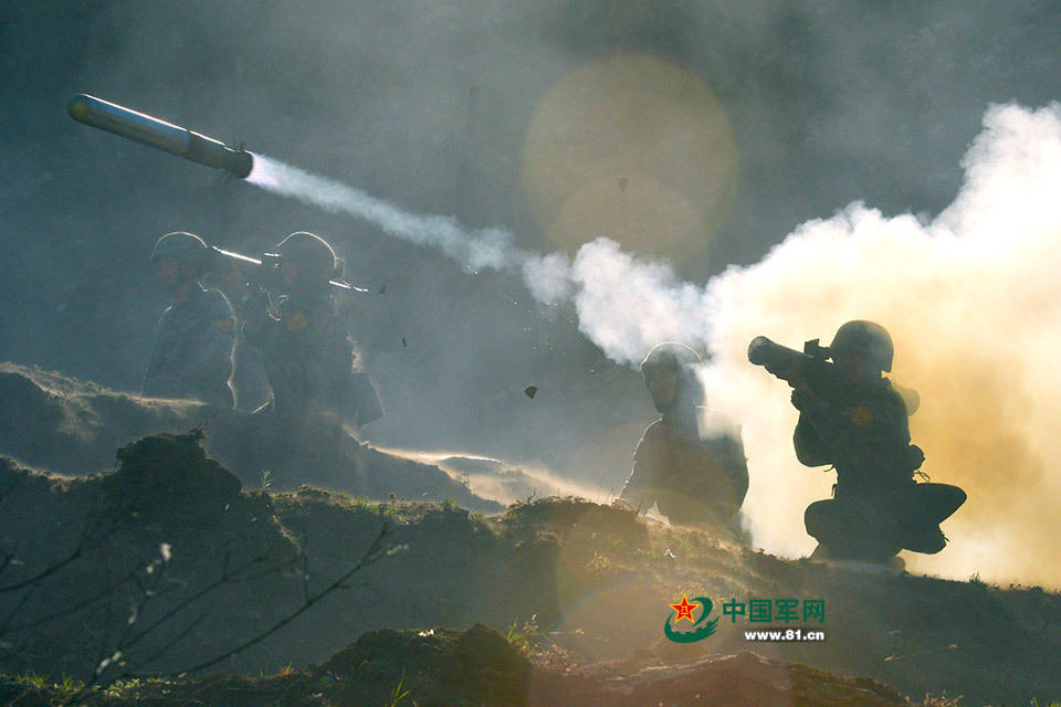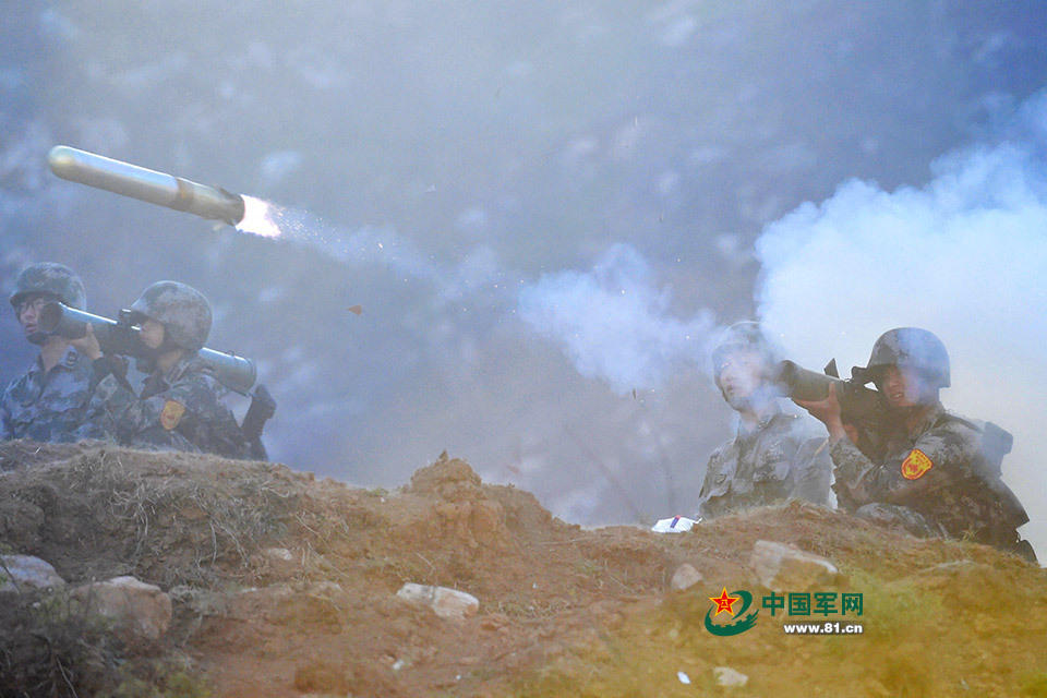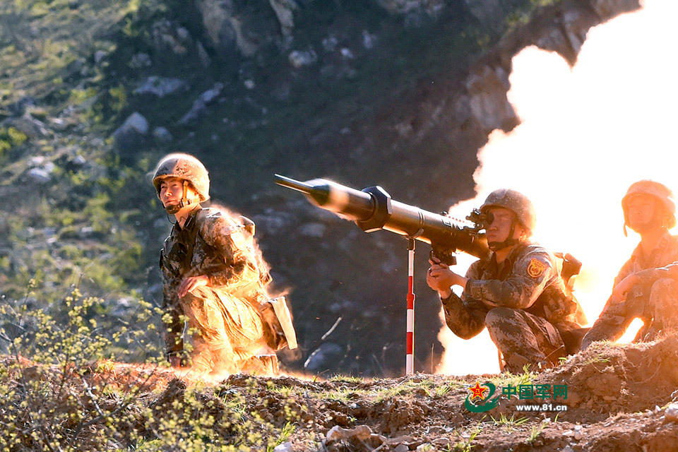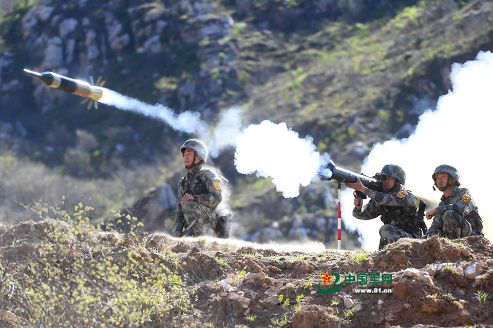 "四月中旬以来,冀中狼牙山脚下炮声轰鸣、硝烟翻卷。担负全军反坦克导弹专业人才培养、被誉为“红箭射手摇篮”的解放军南京炮兵学院廊坊校区,组织学员在当年“狼牙山五壮士”英勇杀敌的战场上,进行破甲攻坚武器实弹射击。图为被誉为“步兵重拳”的PF98式120mm火箭弹出筒瞬间,射手在尾焰的映衬下犹如浴火金刚。吴苏琳摄"