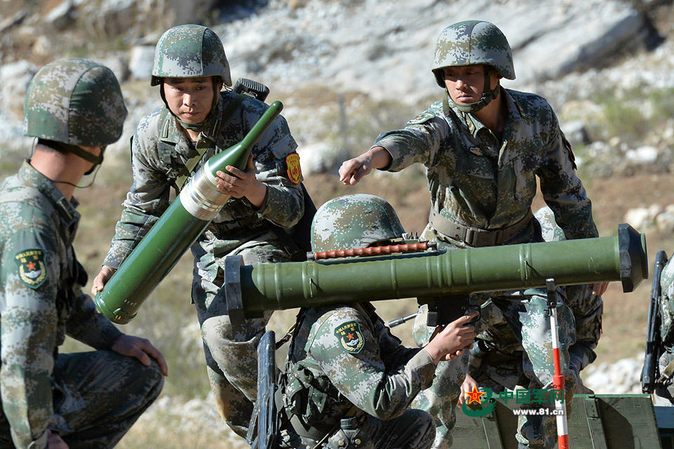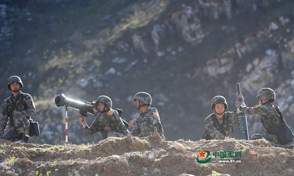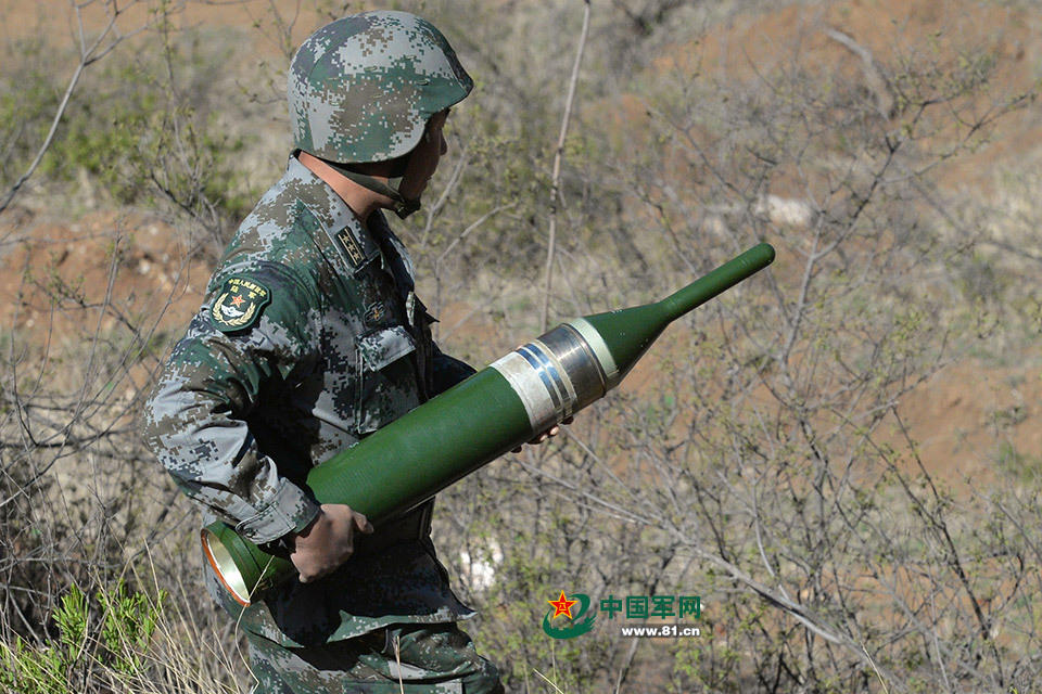 "实弹射击中,1发120mm火箭弹击发后未出筒,现地组织射击的上校教员挺身而出勇排故障弹,阳光下,崭新的“中国人民解放军陆军”臂章分外醒目。"