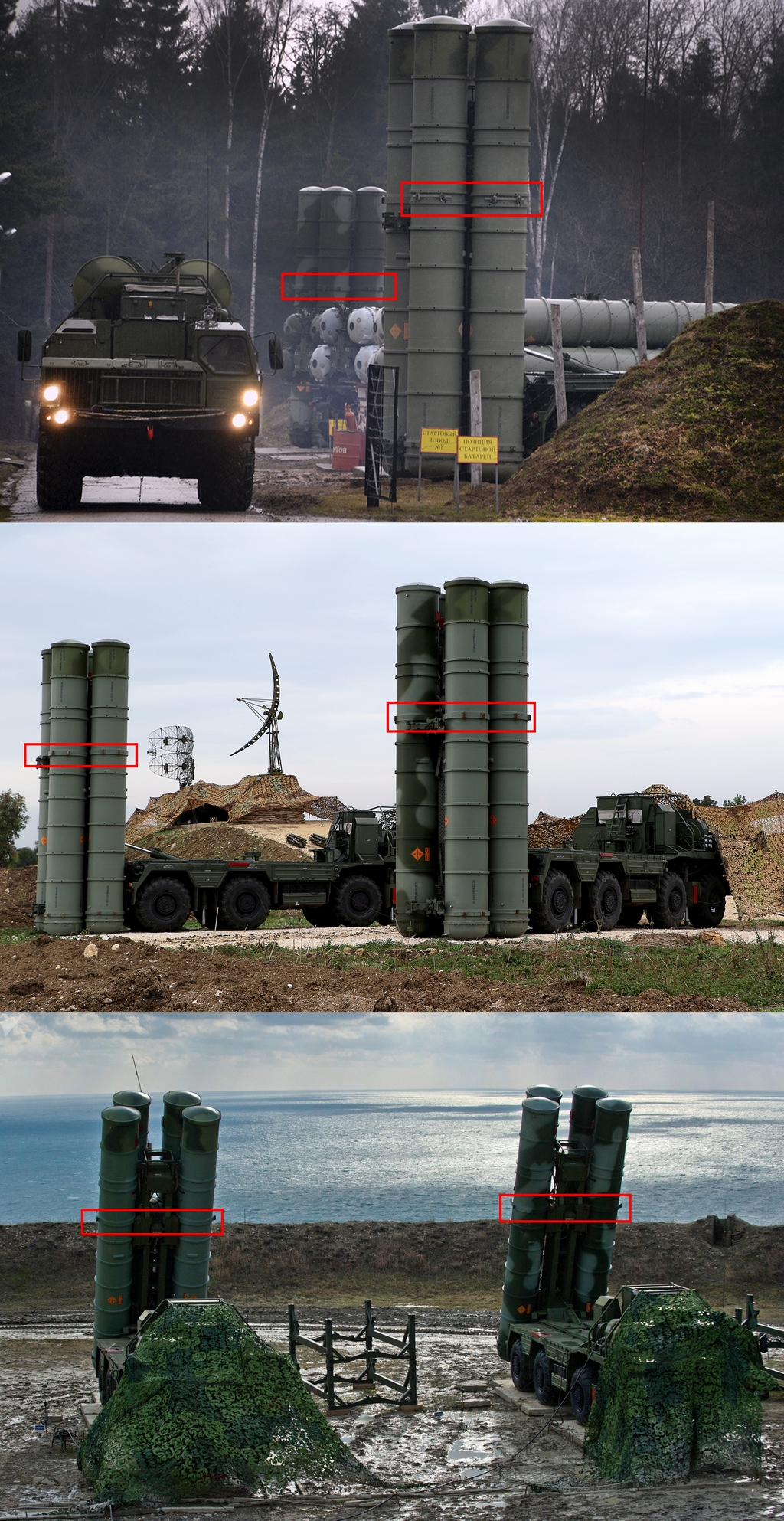 上图为“常规部署”的S-400,混装了新旧发射筒。中图和下图分别为叙利亚和克里米亚的S-400,使用的都是新的发射筒,待遇迥异