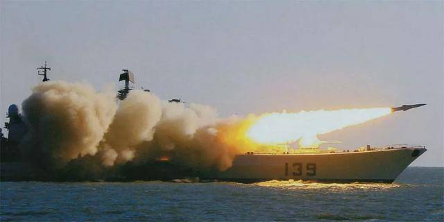 而相比诸如轰-6D战役轰炸机、歼轰-7反舰攻击机、YJ-83/C-803反舰导弹这样的装备,也只有那四艘“现代”级看起来似乎更能和所谓的“航母杀手”沾点边,毕竟该型战舰上可是配备有8枚具备超音速突防性能、理论射程在200千米左右、战斗部重量300余千克、威力相当强大的3M80/82“白蛉”战役反舰导弹的。