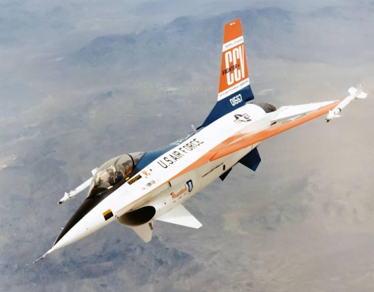 图片:F-16 CCV技术验证机,有一对外八字倾斜的腹鳍翼面。