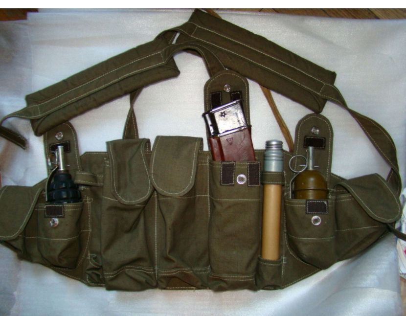 到了阿富汗战争时期,56胸挂又伴随着对阿富汗的军事贸易,进入了苏军的视野。当时苏军的M1969式弹药挎包又笨又重,而缴获的56胸挂非常轻巧方便,加上56式冲锋枪和AK-47又是同胞兄弟,两把枪的弹匣可以直接匹配,都可以非常轻松装进56胸挂的弹匣袋当中,这导致这种中国装具在苏军中十分受欢迎。