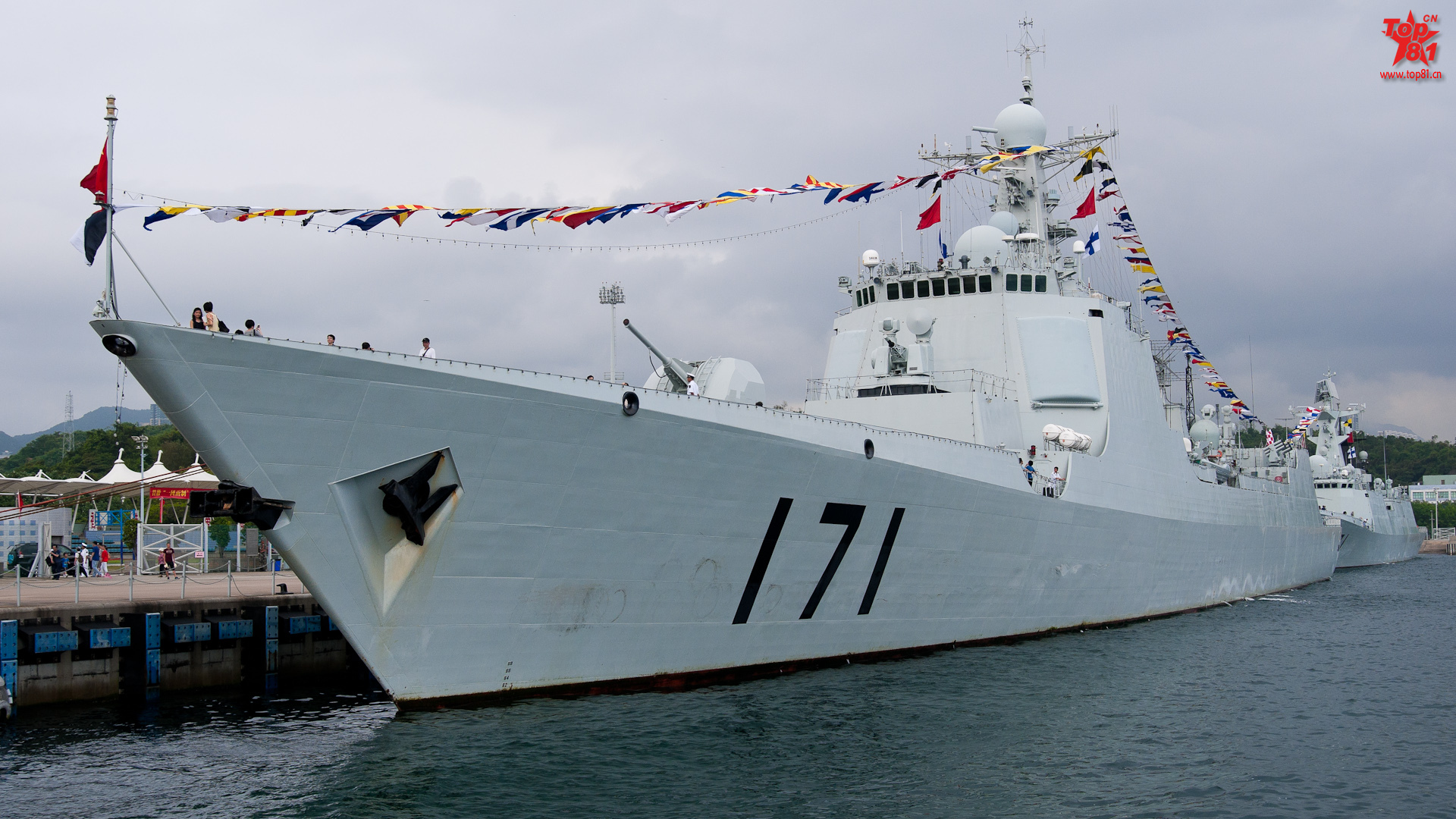 052C型导弹驱逐舰第二艘“海口”号,舷号171,目前服役3艘,在建4艘,是我国目前装备的最先进水面作战舰艇,达到国际上2000年的先进技术水平。