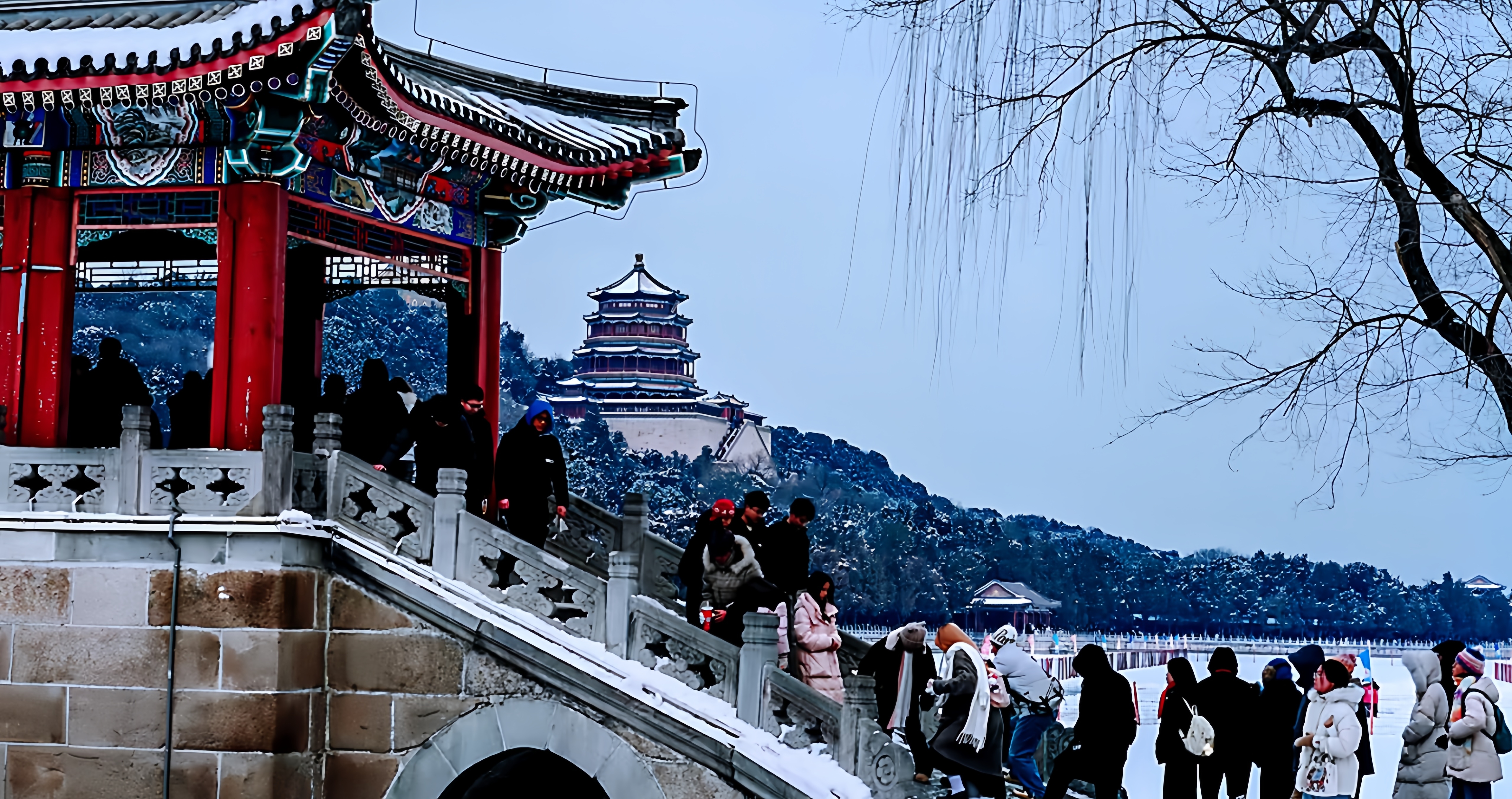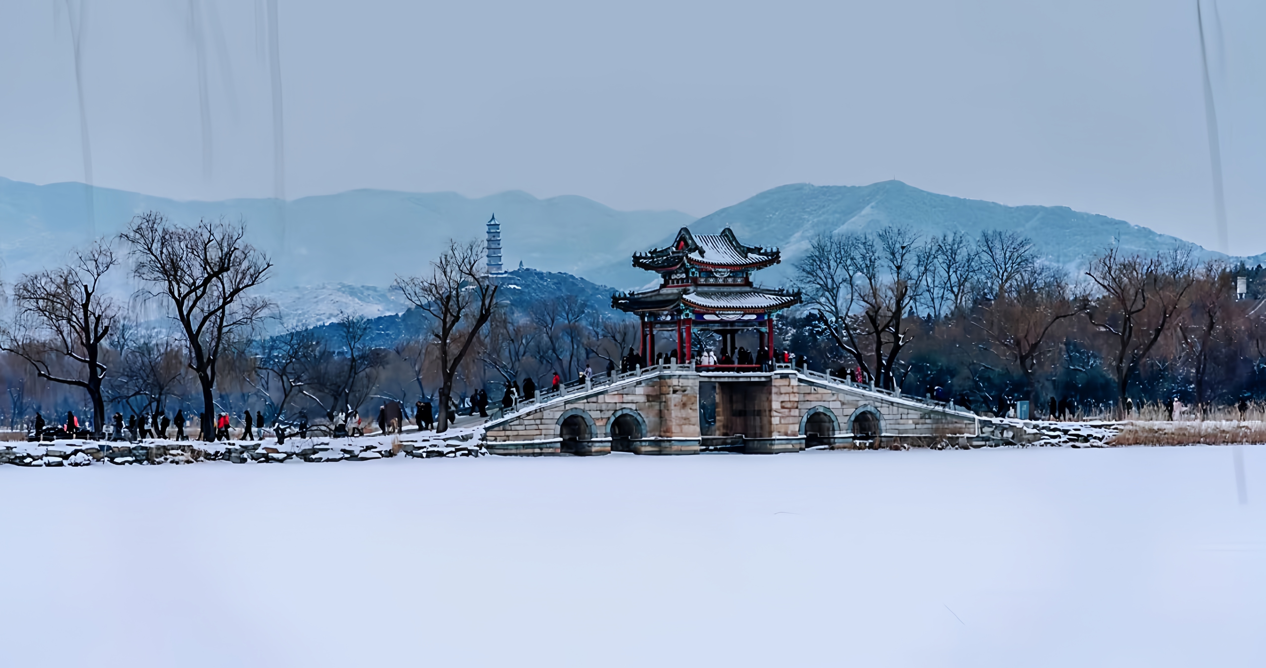 :冰雪里的颐和园另有它的韵味。西提那边过去人很少去