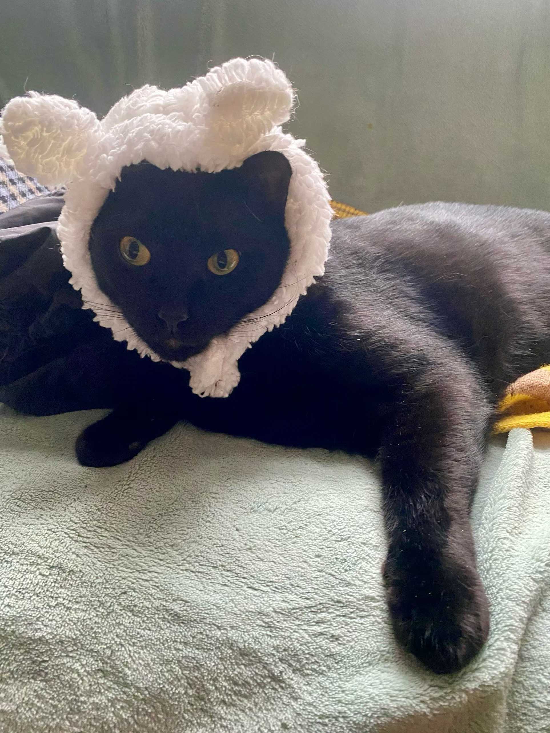 海渊兄养的黑白双猫乃海风诗社之宠爱也。今日纽约大雪,诗友们咏雪正兴起,渊兄秀黑将军戴雪帽:“雪壓眉梢雙目炯,我比烏騅將如何?”