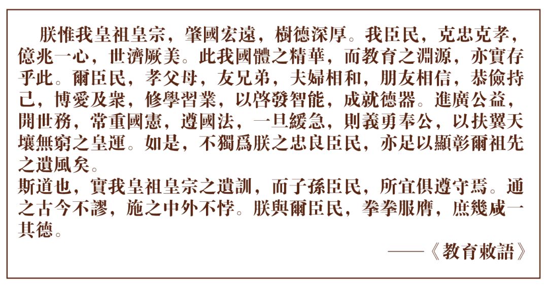 ▍《教育敕语》的标准汉译仅 192 字。早在 1900 年,日本政府就已要求所有学生都要背诵、默写。