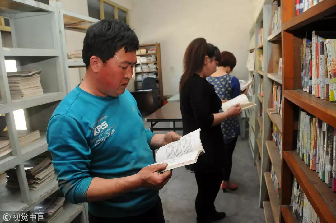 图为在书屋中阅读的读者,但许多农村书屋都是为了应付检查才开放 / 视觉中国