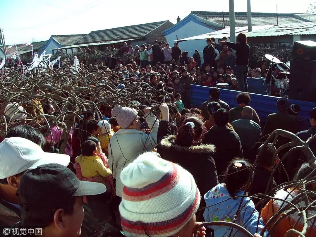 北京某村支书为父办豪华葬礼。请来的戏班子当街表演,街道挤得水泄不通 / 视觉中国