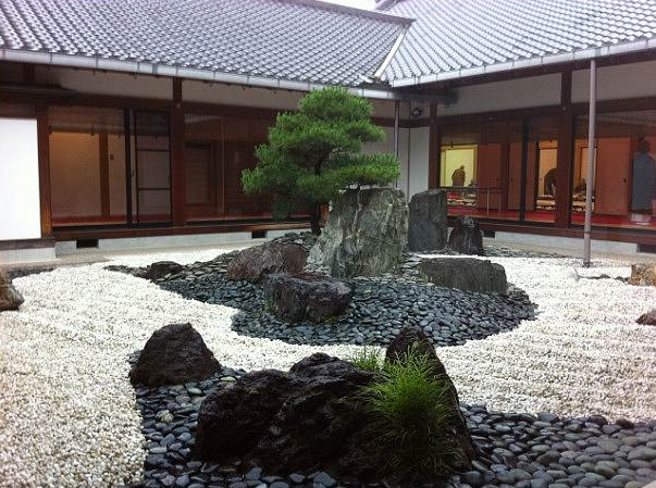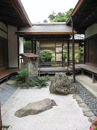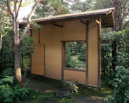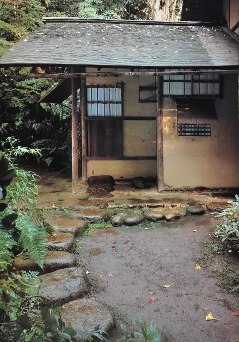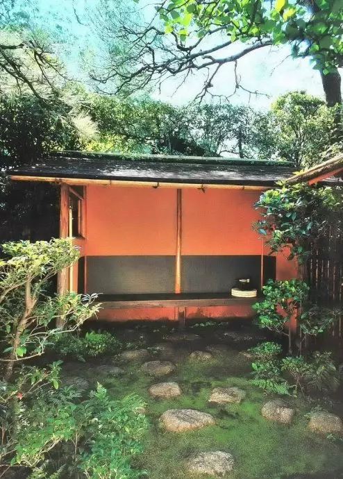 此外,除了茶室,茶庭(茶室前的小院子,又称露地)也是日本茶室文化重要的组成,茶庭的设计深受禅宗思路的影响,极力营造寂静和顿悟的气氛一般情况下,通常完整的茶庭分为内、外两个部分,分别被称为内露地和外露地。为了营造茶庭的静寂和顿悟的氛围,茶庭需要根据茶道的功能流程来进行茶庭的流线布局。从外界到茶庭意味着从喧闹的尘世到安静的禅境;从门廊通往茶室的甬道意味着冥想的第一阶段,即自我启示阶段;在茶室里的禅思则是自我升华。
