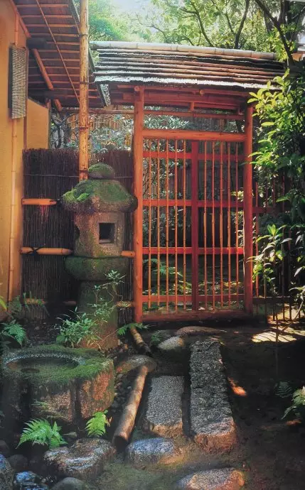 除此之外,构成茶庭的其他景观元素还有露地门、踏石、石灯笼和植物等,这些景观元素的设计也都必须遵守一定的规则。