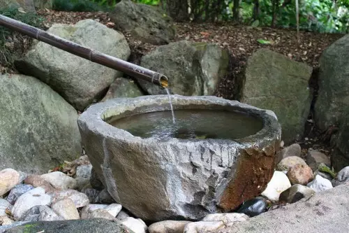 蹲踞在茶庭当中是必不可少的景观元素,客人们在这里洗手、漱口,目的是为了使身心都得到清洁。