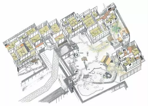 内露地:设置有休息处、洗手间、蹲踞和茶室等,
