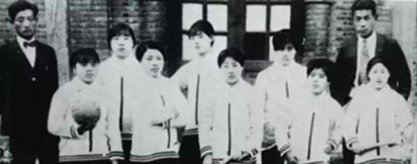 东北大学文法学院的女子球术队队员与教练