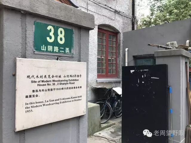 1933年鲁迅和内山完造举办第二次“现代作家木刻画展览会”,会场设在施高塔路千爱里40号(今山阴路2弄38号)