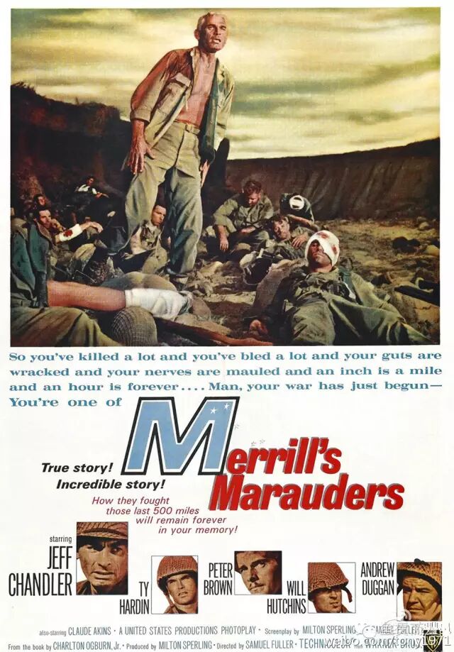 1962年,由塞謬爾?富勒(Samuel Fuller;1912~1997)導演出品的《Merrill`s Marauders》(視死如歸)1962年3月16日在美國上映,想當然麥支隊在電影里神勇非凡。