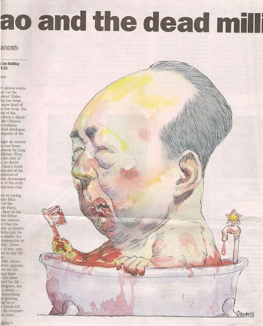 ● 澳洲媒体评论张戎毛传所附漫画,指毛浸浴在中国人民的鲜血中。 |
