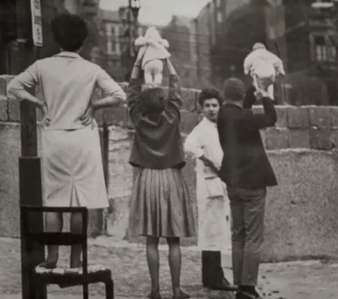 1961年,柏林墙还没推倒。住在西柏林的居民向他们住在东柏林的父母展示自己的孩子。
