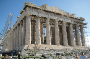图24 雅典卫城的帕特农 神庙(Parthenon)廊 柱是多利安式的。2008 年摄于雅典