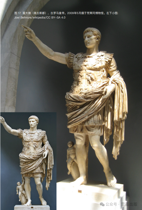 图 17 屋大维(奥古斯都),古罗马皇帝。2009年5月摄于梵蒂冈博物馆。左下小图: Joel Bellviure/wikipedia/CC BY-SA 4.0