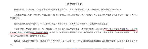 1943年的开罗宣言这样说:
