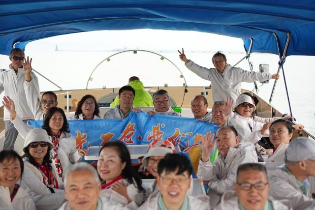 登船时雨势正浓,大家聚在下层船舱闲话家常。谁知轮船刚刚驶离港湾,雨竟悄然停歇,许是我们的热忱感动了上天,赐予这段欢乐相聚的时光。众人相视而笑,纷纷登上顶层甲板。