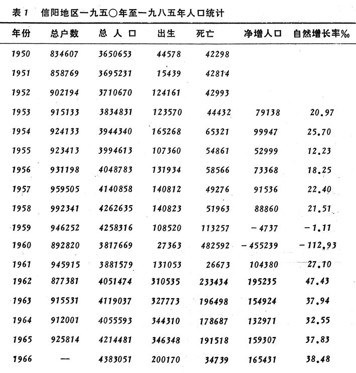 河南南阳地区,1959年末人口590.7万,1960年末降至559.1万,一年中骤减31.6万人,当年死亡29.5万人,正常死亡在6.5万左右,非正常死亡达23万人。周口地区1960年死亡151463人,总人口约500万,正常死亡五六万人,可知非正常死亡应超过9万人。
