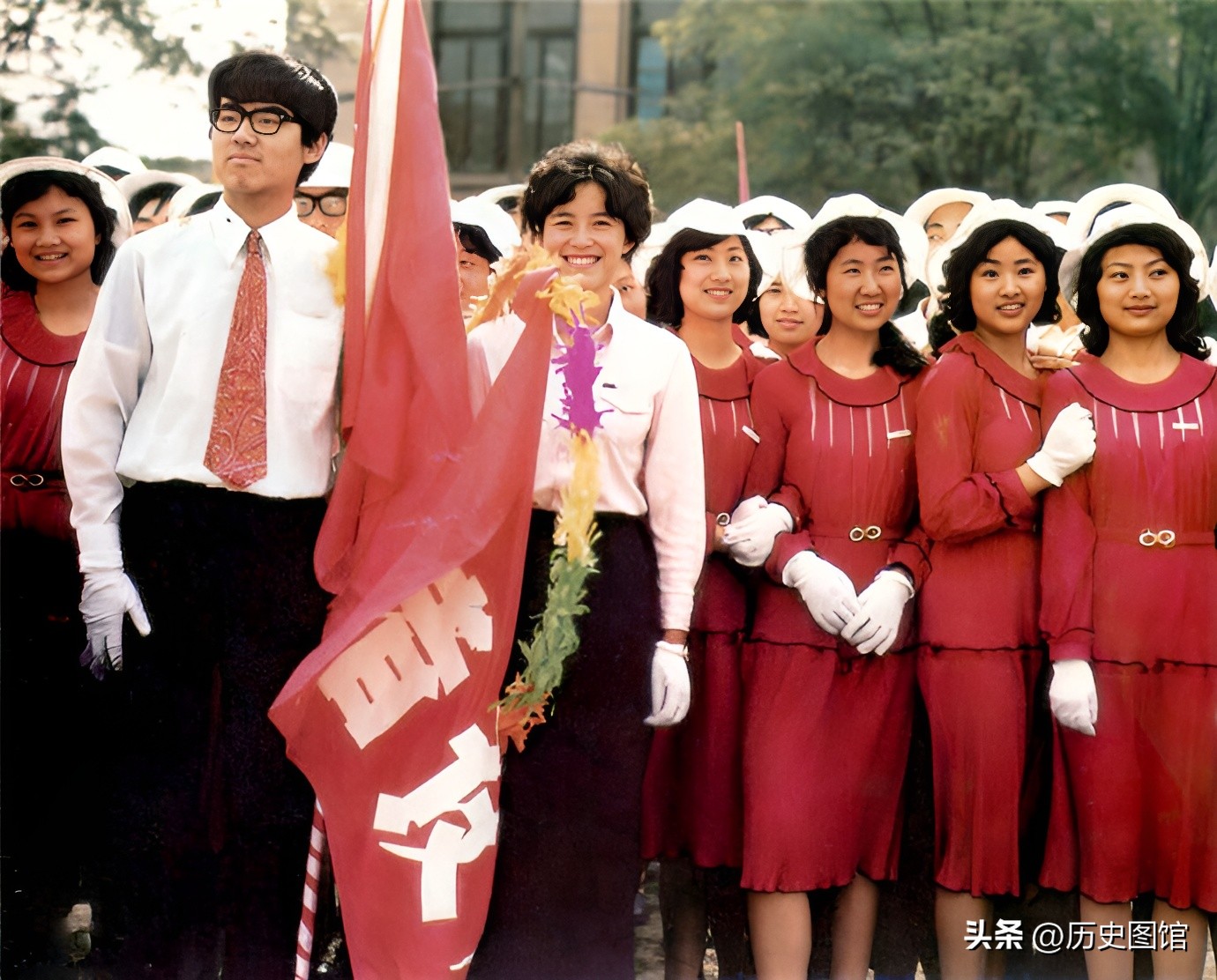 1984年,成都正在举办一场大型活动。其中一个代表队穿着统一的服装。