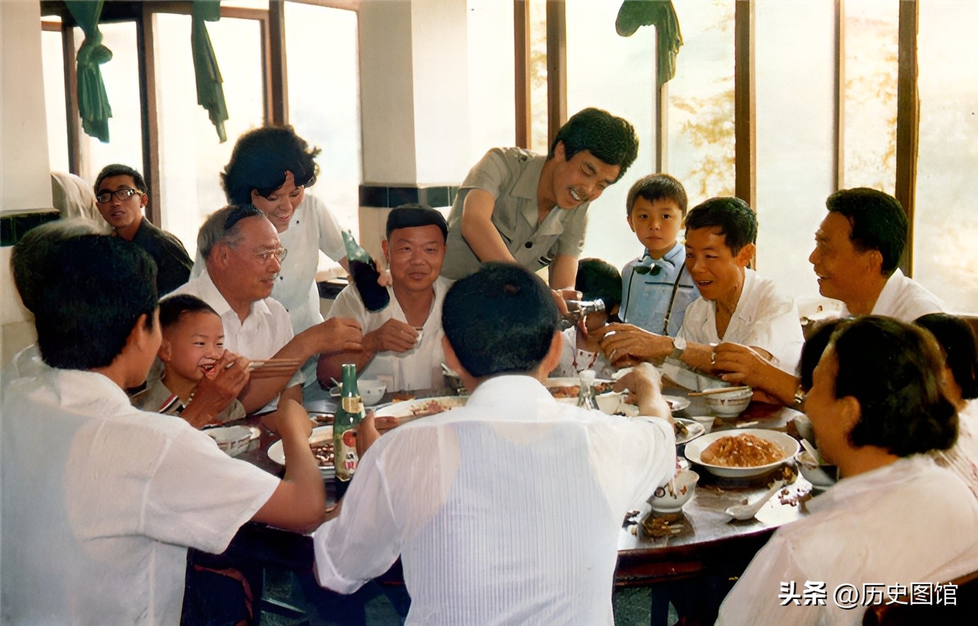 成都是美食天堂。80年代,在成都一家餐馆里,桌上菜品丰富,人们围坐在一起推杯换盏,其乐融融。