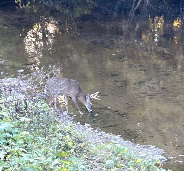 小糖溪绿道上,只有从秋到冬,才能看到这景色——野鹿的角长成了。坚硬,有力,雄壮,多叉,伸向天空,威临大地,它在溪水中沾上水花,借着晨光,鹿角闪亮。