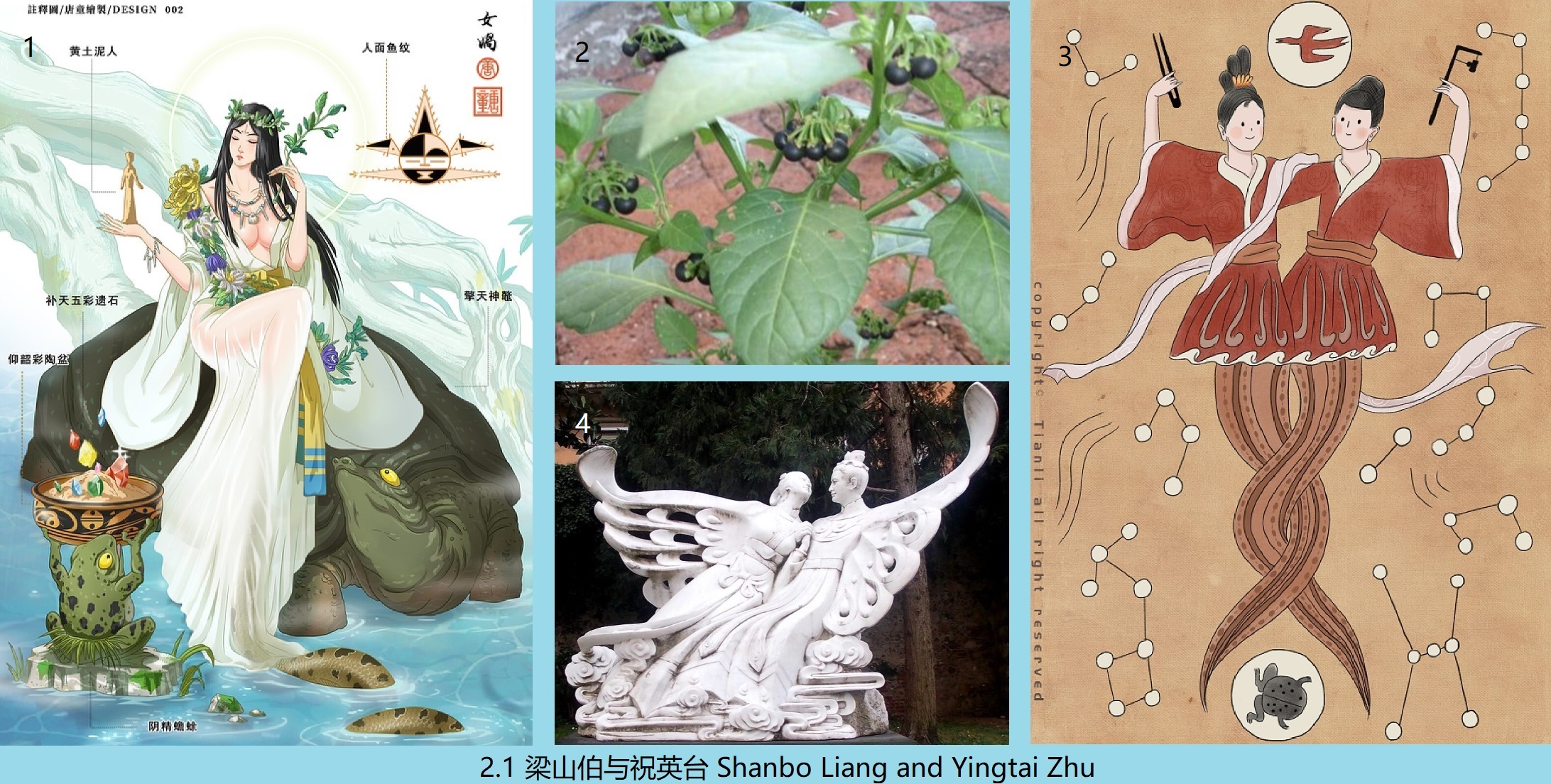 公元前4431年,夏国17岁的绛珠公主(如图2.1-1,别名祝英台,女娲)在典兵学院完成了学业。注,绛珠是龙葵草(如图2)的别名。夏国是母系传承的国家。如果绛珠有一位活佛丈夫,就有资格成为王位继承人。夏国文化中,女王的活佛丈夫被称作伏羲,义为屈服于女神的太阳神。伏羲所从事的职业被称作共工。也就是说,夏国的女王和丈夫伏羲是双身神,或双身佛(如图3)。