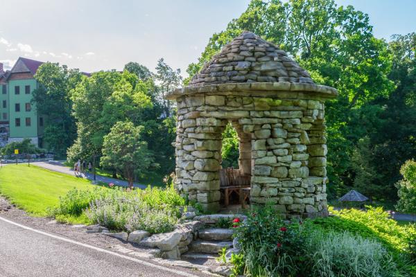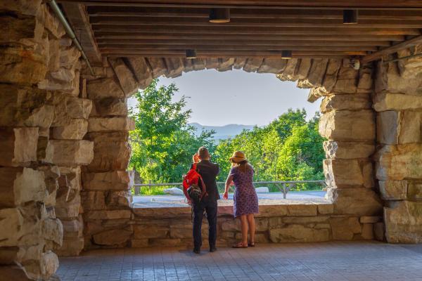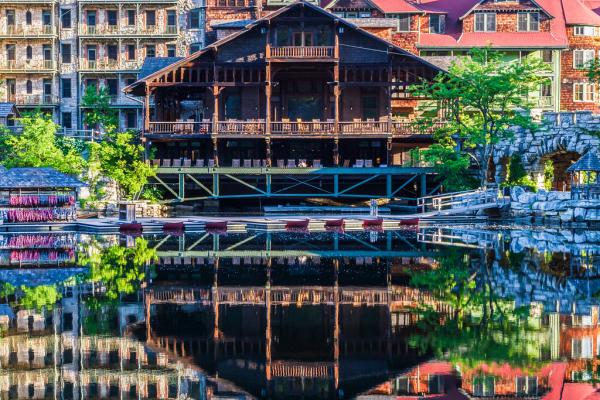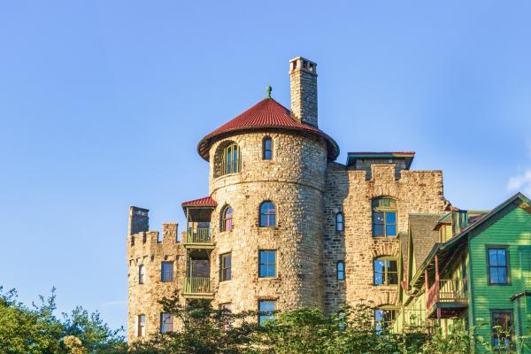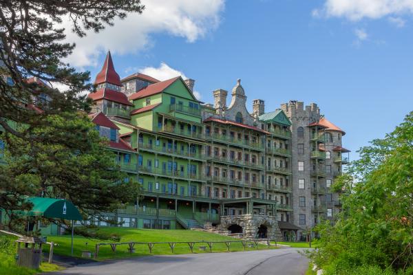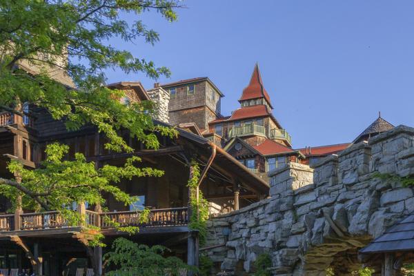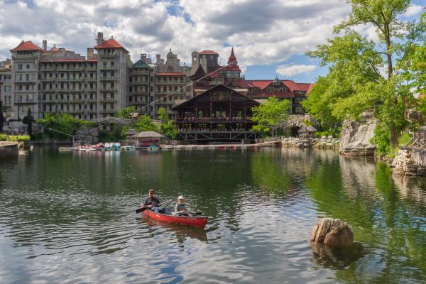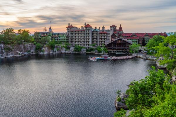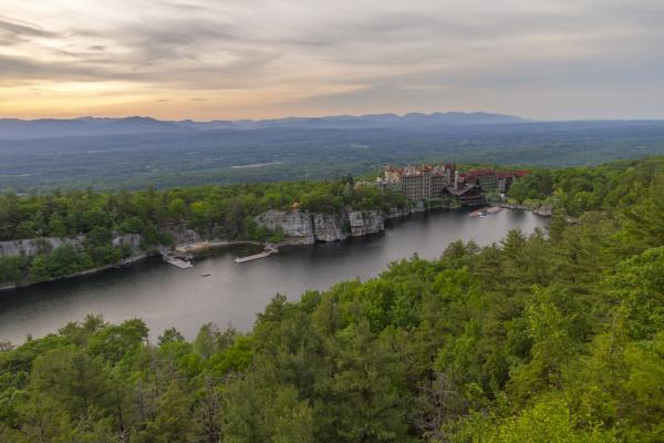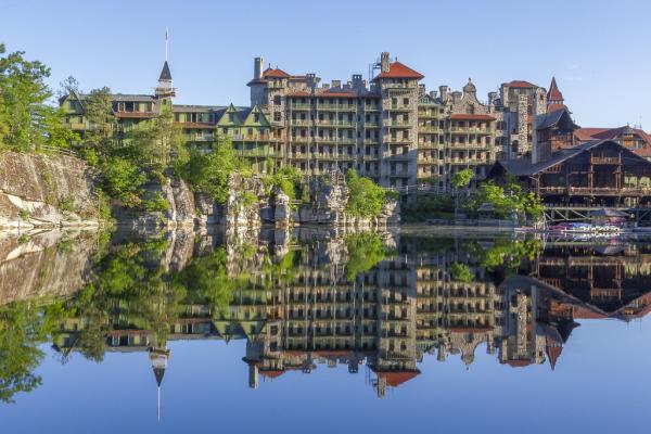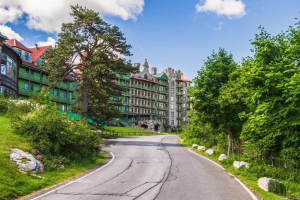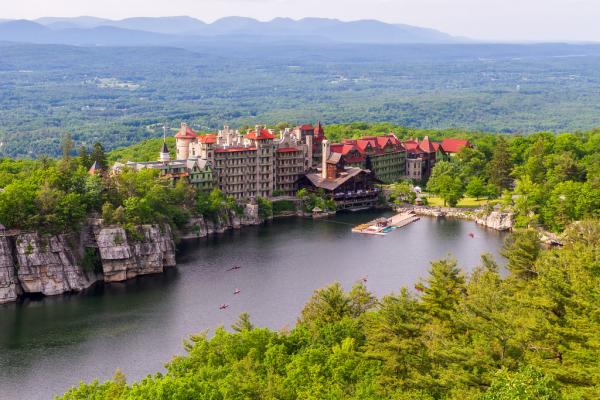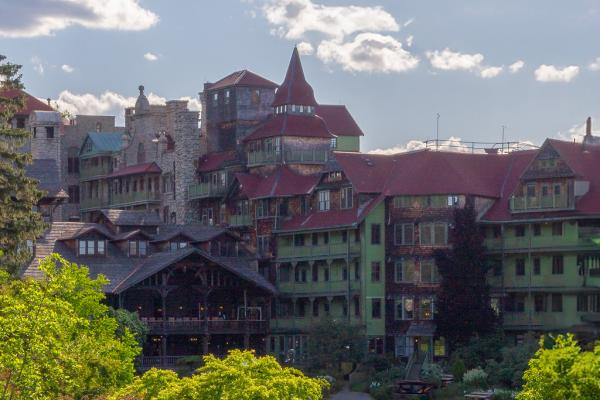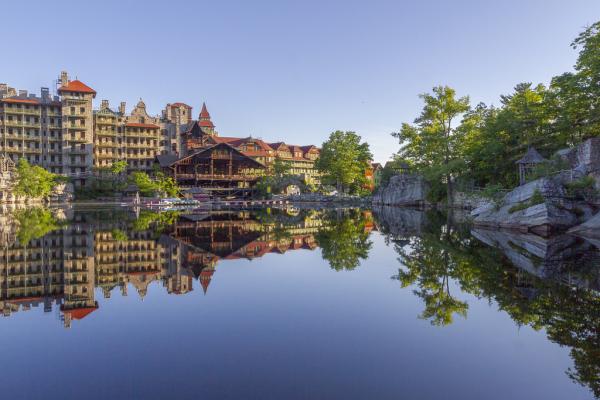 纽约州莫霍克山屋,湖光山色,影壁对称;红瓦绿树,相映成趣