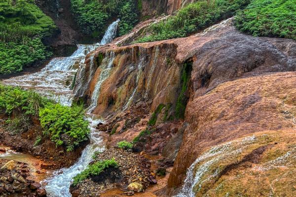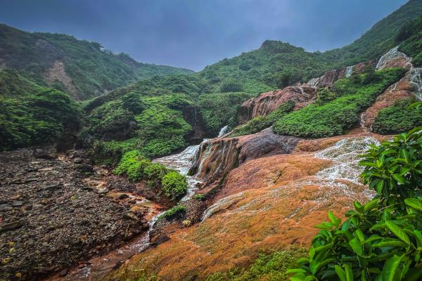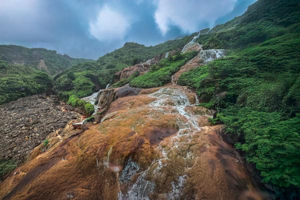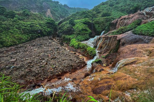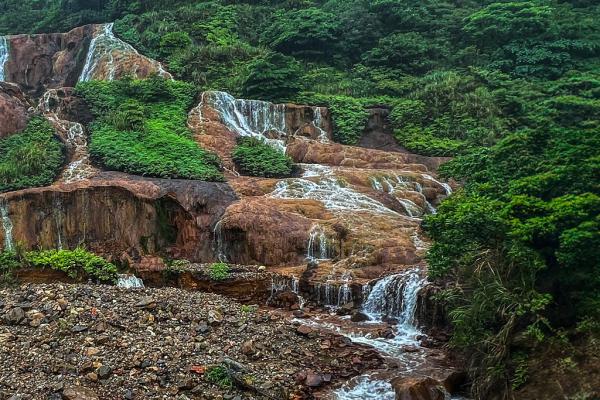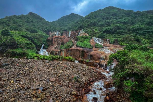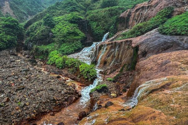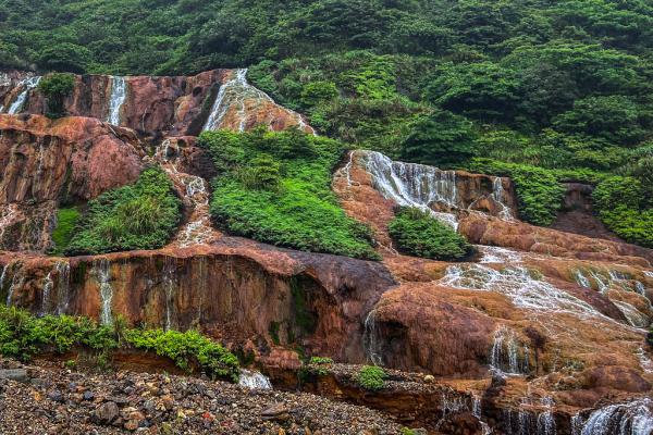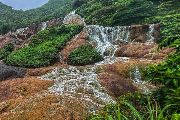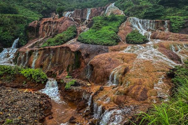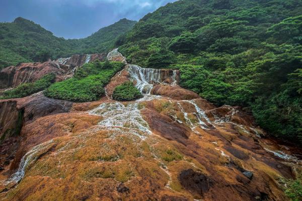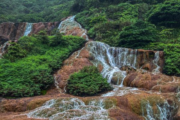 台北黄金瀑布,瀑布如丝,温柔地抚摸着被矿物质染红的每一寸岩石