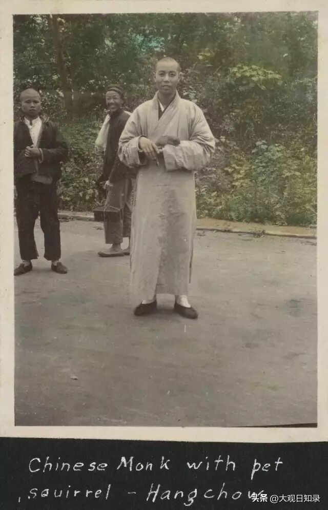 西湖边的和尚,手上还捧着一只松鼠。