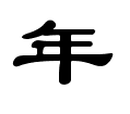 先看小篆上面的禾字。小篆最上面的转折,表示稻穗的一短横变成了隶书上面的短撇。小篆上面的U形被拉直,变成了与短撇相连的横。小篆中U下面的长撇长捺也被拉直,变成了隶书里中间那一横。小篆下面表示人下垂的手臂的长弧线,变成了隶书里连接第二横与第三长横的短竖。小篆中下面的一横(就是千字里的那一横)变成了年字里最长的那一横。小篆上面禾字里的竖,与下面千字里的竖,合成一笔长竖从上贯穿到下。