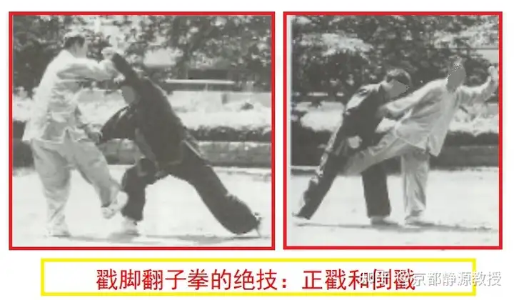 比如说,戳脚翻子拳的模式拳是那著名的玉环步加突然的前脚掌直线向前猛戳,我特喜欢这个动作,我每天练习戳树,真可以说踢死了好几颗树。后来我在湖南向著名武术家、八段高手彭汉池大哥学醉酒八仙拳时,我意外地发现:如果把醉拳中的步伐突然变成戳脚翻子拳的玉环步加前戳脚猛戳,简直就是一个脚法的绝招!一戳一个准,对方准备好了要使“接腿摔”来破你,结果你照着对方的膝盖或迎面骨或裆部,最短直线起脚一戳,干脆迅猛,绝对的杀手锏!尤其是在晚上处置意外时。这已经成了我个人发明的一个模式拳。年轻时期,我甚至想创编一套戳脚翻子拳和醉酒八仙拳的组合套路……一旦脚法可以踢断或戳断和自己的小腿一样粗细的树,或者踢断或戳断5-10块砖头,再好的把式也怕被断了腿!因为下一个动作就是出单肘或双肘连环猛击对方双眼和头部,别忘了一定要使用前脑门近距离猛撞其太阳穴!头部是老天给你的近战时最佳的暗器!非常多的中国传武师傅们却从不懂得使用它。