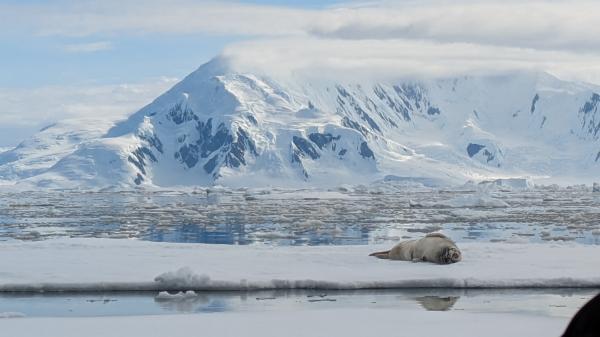 无论行前看了多少南极的图片,此时此刻,身临其境的震撼是全新的。四周雪山冰川环绕,眼前大小冰山和浮冰把我们包围,密密麻麻,悠悠荡荡,自由自在地从我们面前飘走,像是一场盛大的冰山/浮冰表演,你方唱罢我登场,千奇百怪,万冰争秀,无声胜有声。这些浮冰最终将融入大海,这是它们消失之前的辉煌。我们和它们只有一瞥的缘分,但这一瞥可以说是一眼万年,足够我余生回忆。曾经为阿拉斯加的浮冰震惊,感动,以至于写诗抒发,原来,真正的远古奇观在南极圈里。