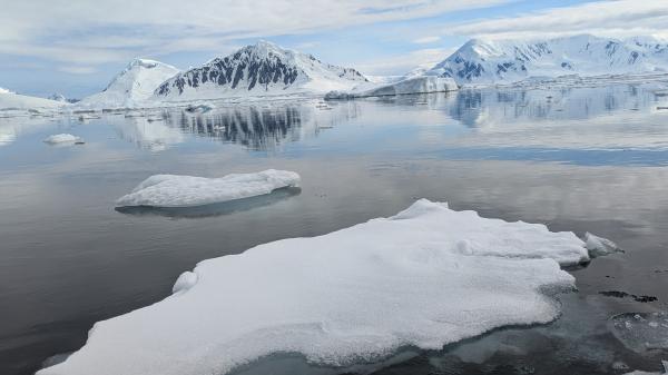 决定了探险船不再继续往南后,新的活动安排就出来了,登陆海冰。乘冲锋舟在管喉航道附近巡航后,船方安排了在海冰上登陆。海冰是冰冻的海水,大片的白色平原。登陆海冰是南极圈内或者威德尔海才有的机会,需要合适的季节和天气,也需要能承载足够人数的海冰。探险向导们提前安排好了,确认安全,我们这才从冲锋舟上依次下来,站到了海冰上。这时已是傍晚,南极圈内的夏天是白夜,阳光柔和而明亮,远处冰山倒影,脚下冰雪皑皑,冰下则是深深的南冰洋。水面上有冲锋舟停靠,周围的世界晶莹剔透,在不变的时光中纯粹着,我们与这片古老的世界相拥。不由得又一次感叹我们的好运气。网络上有句话说,运气好是因为人品爆棚,这当然只是说笑。无论如何,感恩吧。