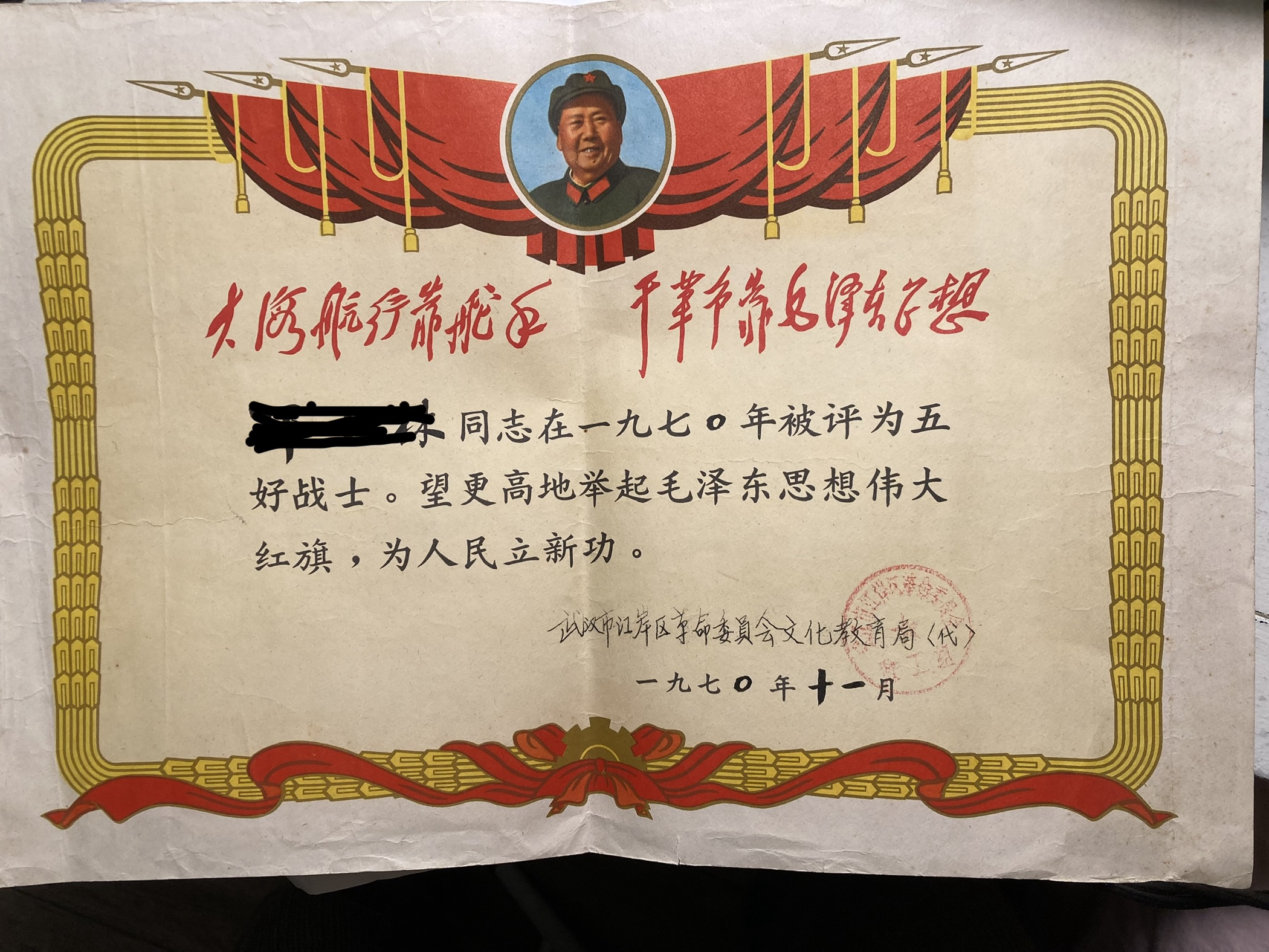 55年前的一件文物发表时间:2026-01-22 13:56+-今天,翻出一件文物:文革期间,区教育局给十三岁初一学生颁发的“五好战士”奖状。(政治思想好、军事技术好、三八作风好、完成任务好、锻炼身体好)