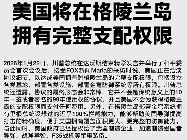 总统就美国拥有格陵兰告诫欧洲.中期选举三大关键任务!