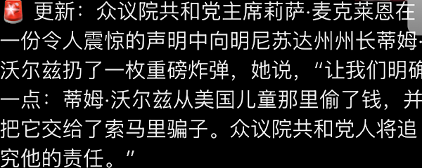 与此同时 明尼阿波利斯的街头冲突也持续升级,明州州长蒂姆.沃尔兹甚至要调动州国民警卫队对抗联邦政府。